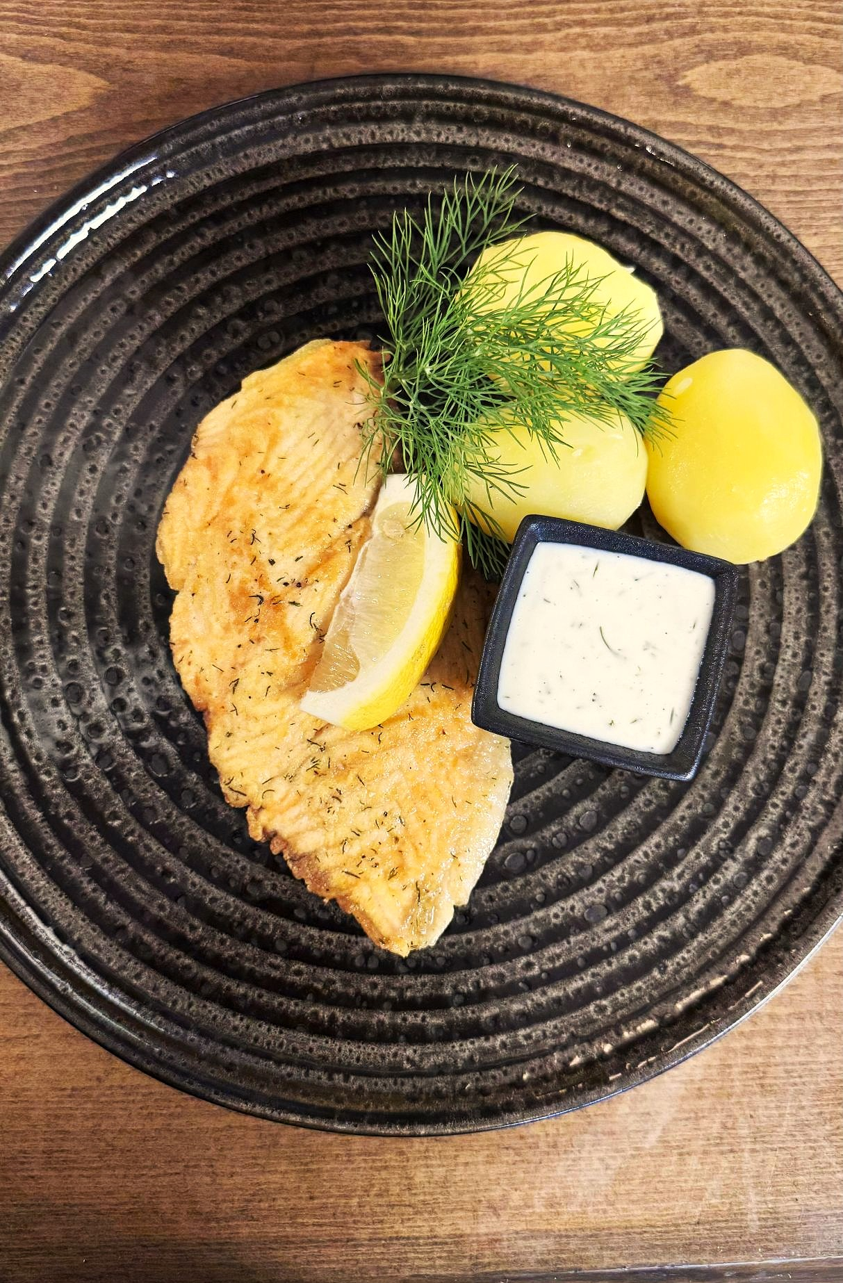 Med dragonsås och kokt potatis el.ris